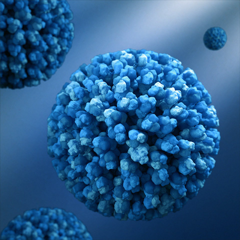 The image depicts the blue tongue virus (BTV). The BTV is the prototype virus of the Orbivirus genus. The species belonging to this genus have segmented, double-stranded RNA genomes.