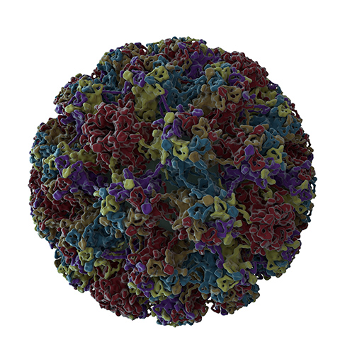 The image shows the human papillomavirus, or HPV. It is a host-dependent, small, double-stranded DNA virus. It represents the most common sexually transmitted disease in the world and is, furthermore, a possible gateway for the development of anogenital cancers, including vulval, vaginal, anal, and oropharyngeal cancers.